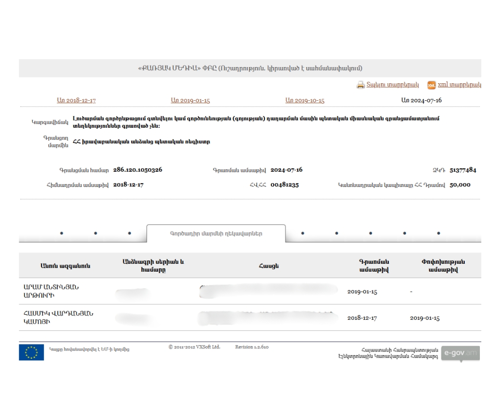 - Iravunk Media LLC Beneficial ownership declaration (Armenian) Հայաստան · 2025Կազմակերպություն