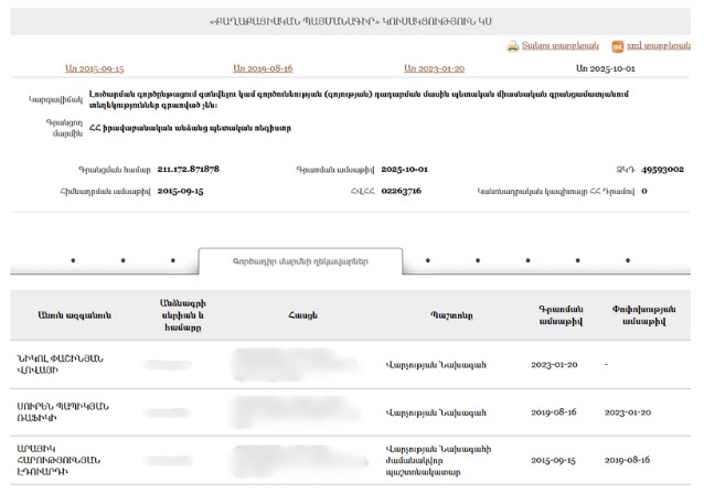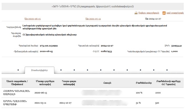 - New Armenia CJSC Beneficial ownership declaration (Armenian) Հայաստան · 2025Կազմակերպություն