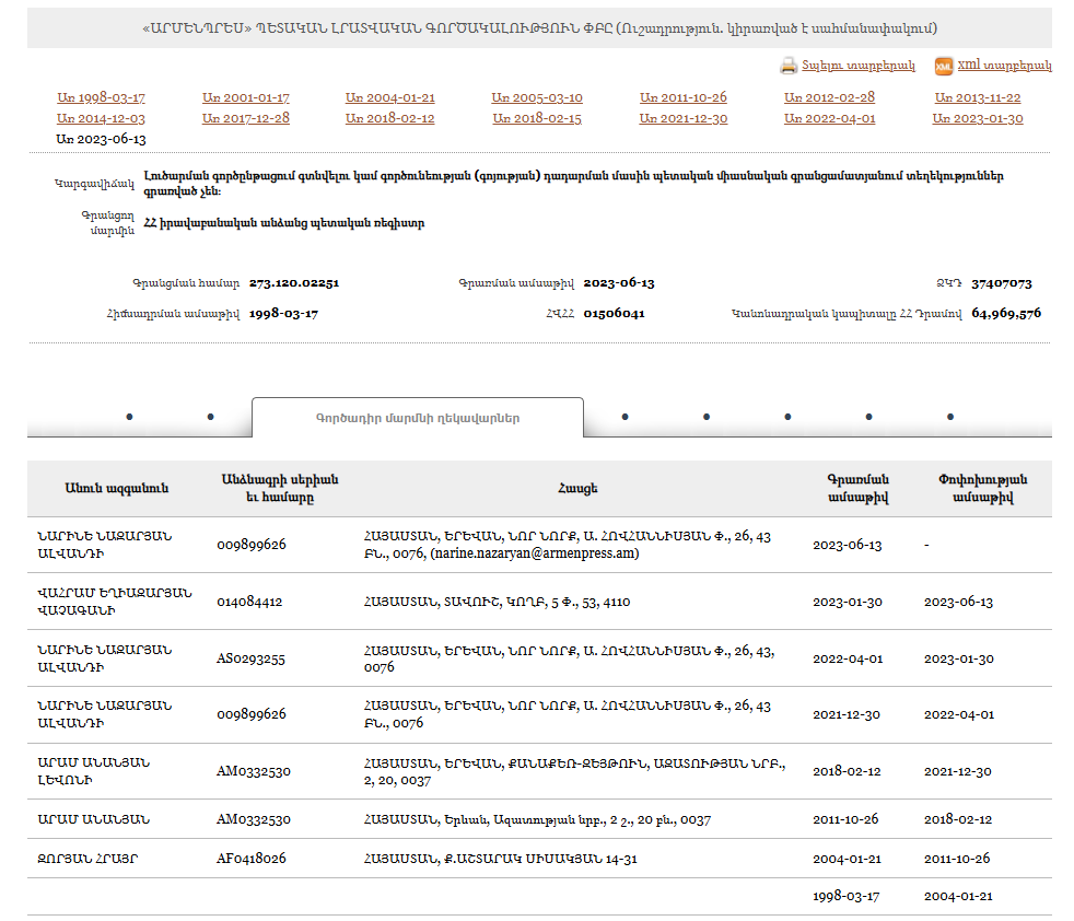 - Free news LLC owners (Armenian) Հայաստան · 2025Կազմակերպություն