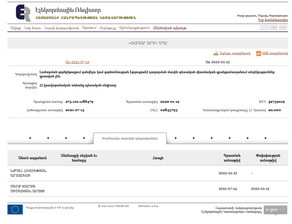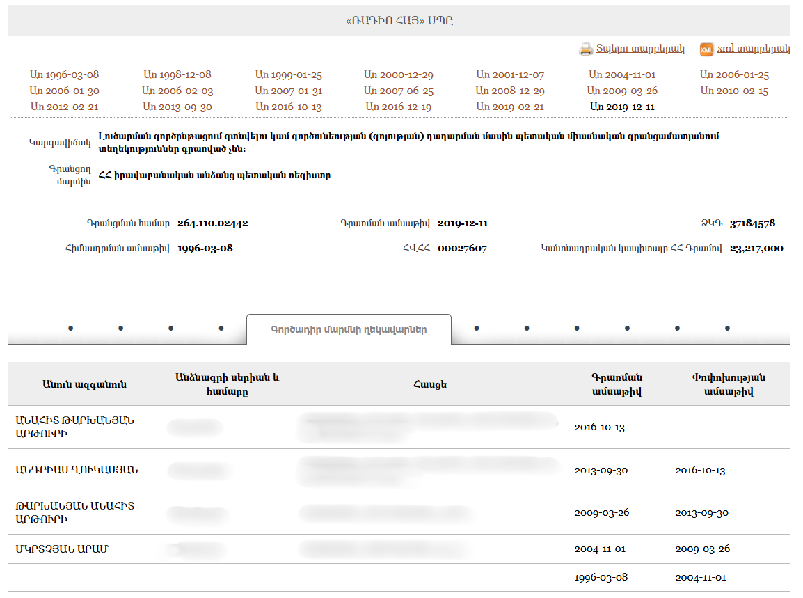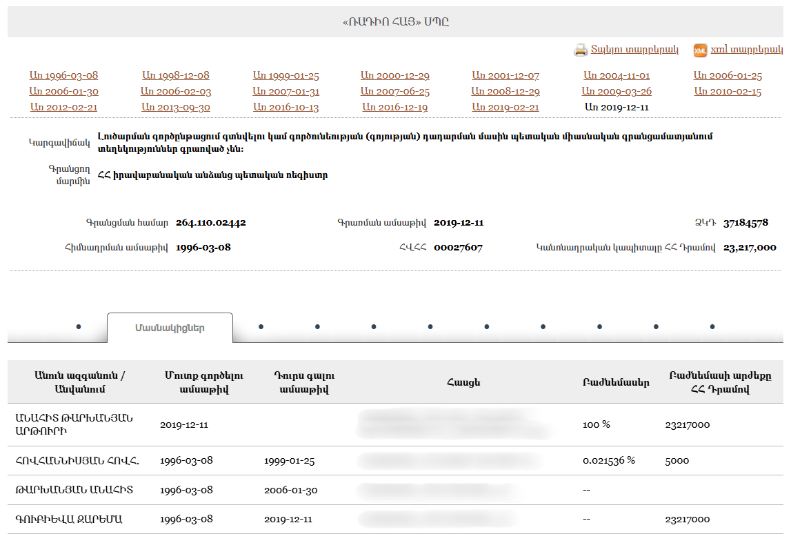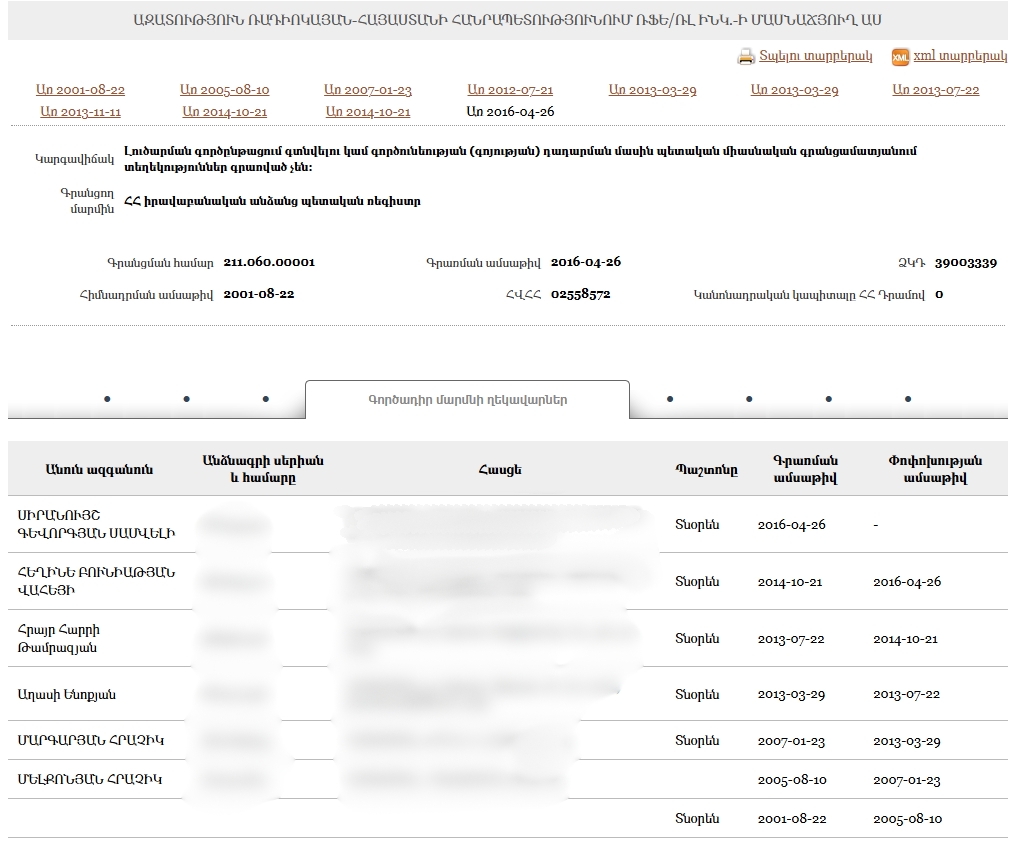- Public Radio Company of Armenia CJSC profile (Armenian) Հայաստան · 2025Կազմակերպություն