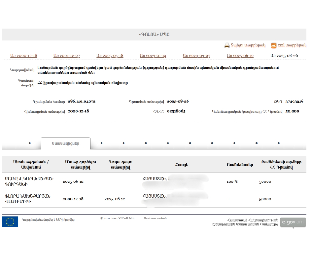 - Reopen Media LLC Beneficial ownership declaration (Armenian) Հայաստան · 2025Կազմակերպություն